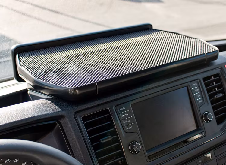 Uppgradera din Volkswagen Crafter (2017 och framåt) med ett praktiskt och funktionellt instrumentbordsbord. Perfekt för extra avlastning och förvaring i din transportbil, samtidigt som det ger din instrumentpanel en snygg och organiserad look. Bordet skapar en stabil yta för mobiltelefon, anteckningar eller kaffekoppen under körning och gör arbetsdagen smidigare.