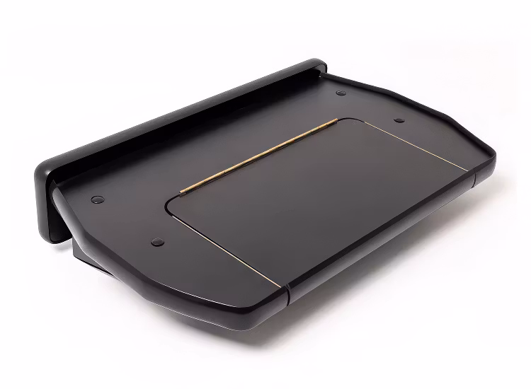 Den medföljande antiglidmattan säkerställer att föremål ligger stadigt på plats även vid körning. För fordon med ett öppet förvaringsfack på instrumentpanelen är bordet utrustat med en öppningsbar lucka, vilket ger smidig åtkomst till utrymmet under bordet.
