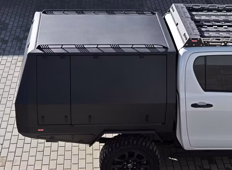 Taket ligger i nivå med Toyotas originaltak och är utrustat med skenor för snabb installation av ställningar eller taktält.