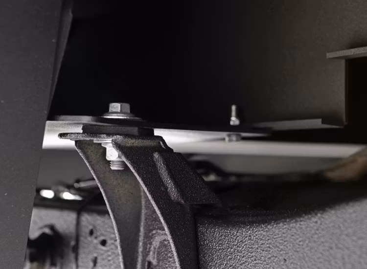 Monteringsdetaljer i stål på 4 mm använder fabriksmonteringspunkterna för säker och stabil installation.