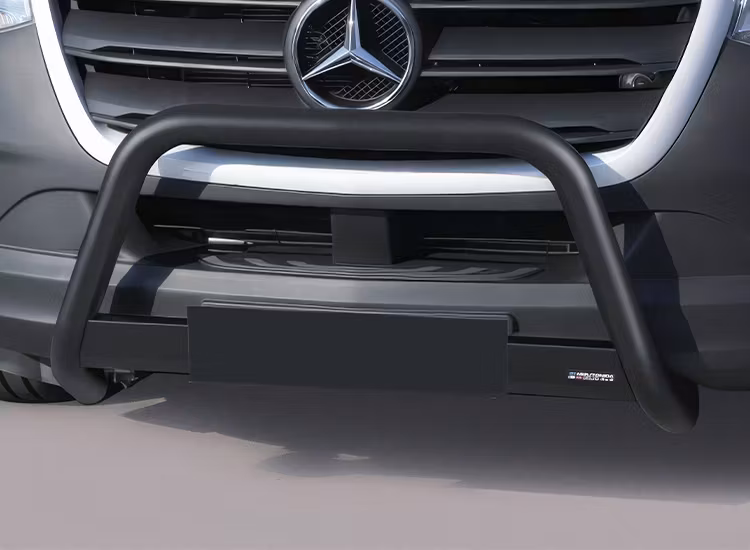 Ge din Mercedes Sprinter 2018+ en distinkt och kraftfull look med vår ECE-godkända frontbåge från Italienska Misutonida. Tillverkad i svartlackerat eller rostfritt polerat stål, är denna frontbåge både robust och stilfull.