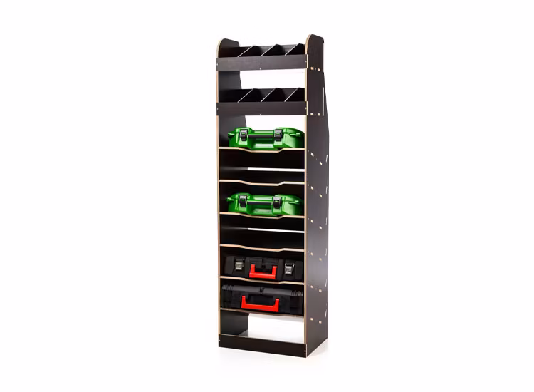 - Flexibel Förvaring: Utrustad med 8st mindre fack, är denna hylla perfekt för att organisera mindre verktyg, tillbehör eller material. Dessutom har den 6st fack för dina verktygsväskor med måtten L:475 x H: 150mm vilket ger en mångsidig förvaringslösning för alla dina tillbehör.