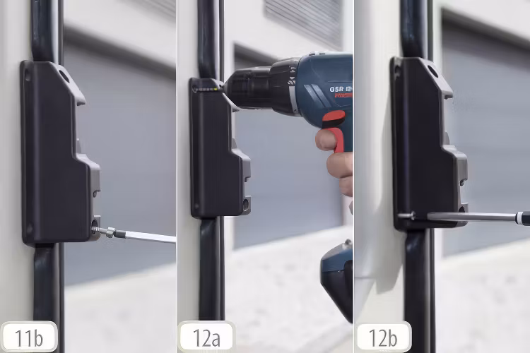 9. Fäst ytterligare plastkåpan med två skruvar. Vi rekommenderar att förborra med ett 2 mm borr (bild 12a; 12b).