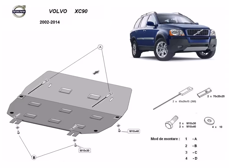 Detta underkörningsskydd / hasplåt är utformat för att passa alla versioner av Volvo XC90 2002-2014. Det erbjuder skydd för viktiga komponenter i bilens främre del såsom motor och växellåda. Om du planerar att köra på sämre vägar, campa eller använder bilen för jakt är detta underkörningsskydd ett prisvärt alternativ för att skydda bilen mot skador undertill. Dessutom slipper bilen få upp en massa saltstänk och smuts upp i motorutrymmet.