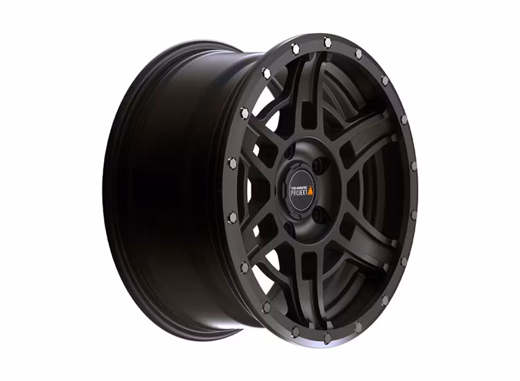 Vintergodkänd Satinsvart AT5 8x17 ET40 Offroadfälg från Twin-Monotube Projekt till din VW T5 / T6 / T6.1. Säljes styckvis. Fraktfri leverans!