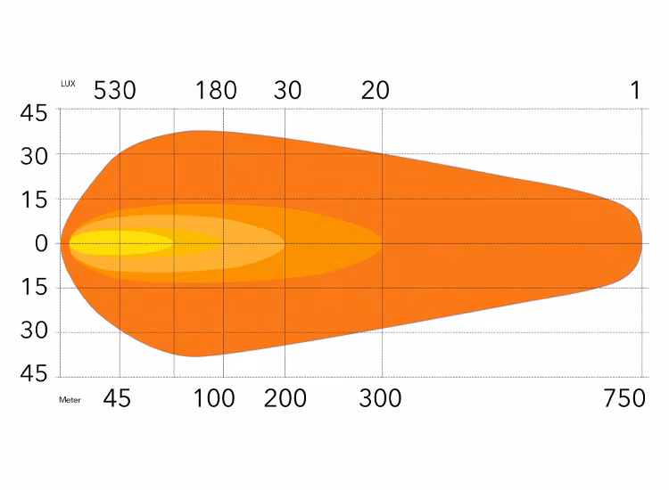 - 1 lux: 750 m