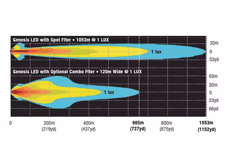 Med en distans på 1 119 meter @1LUX och massiva 15 540 lumen sätter Genesis Professional LED nya nivåer på vad som är möjligt med dagens LED-teknik.