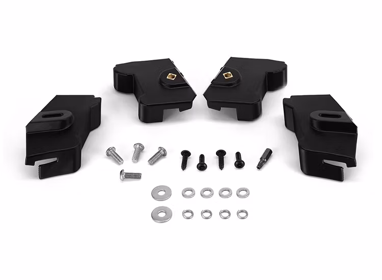 Kitet levereras komplett med fordonsspecifika fästen, kablage, skärmallar och stöldskyddsskruvar för en enkel, säker och hållbar installation. Fästena är tillverkade av UV-stabilt, högstyrkekompositmaterial som tål väder, vibrationer och kemikalier.