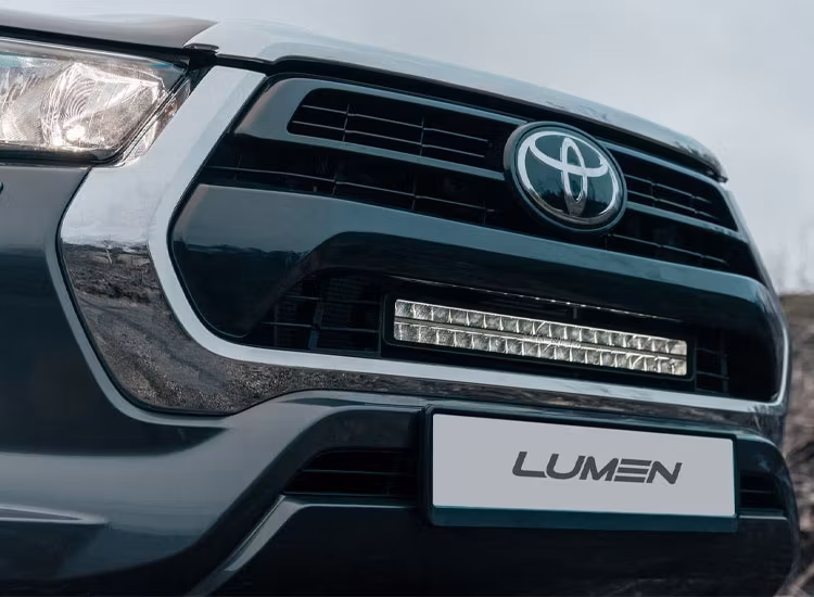 Detta modellanpassade Lumen grille kit till Toyota Hilux SR 2021+ är en norskutvecklad lösning för integrerad montering av LED-rampen Lumen Helios DX20 i bilens originalgrill. Rampen levererar 23 936 lumen, har kombinerad ljusbild och positionsljus (orange eller vitt), samt ljusfärg 5700 K. Lampan är godkänd enligt R10/R148/R149 och har kapslingsklass IP67. Grillfästena är designade och tillverkade i Lindesnes, Norge, för optimal passform och ett fabriksnära utseende.
