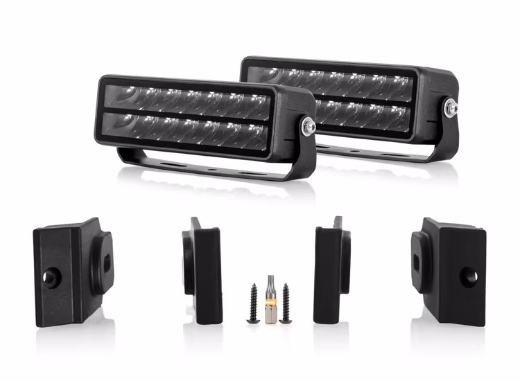 Ett modellanpassat grillkit ger ett mer integrerat och stilrent resultat jämfört med universella fästen. Fästena är särskilt utvecklade för Toyota Land Cruiser 250 2025+ och följer bilens formspråk, vilket gör att extraljuset smälter in naturligt i grillen. Installationen är enkel och kräver inte att grillen demonteras. Du skär upp öppningen, placerar fäste och lampa, och får en stabil och ren montering utan synliga modifieringar.