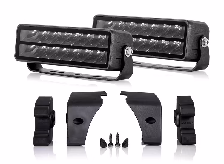 Lumen Helios SQ16 är ett modellanpassat extraljuskit för VW T6.1 där två kraftfulla LED-lampor integreras direkt i bilens grill. Satsen är framtagen för att ge en diskret installation med hög ljusprestanda utan att påverka funktioner som luftintag eller AC-kylning.