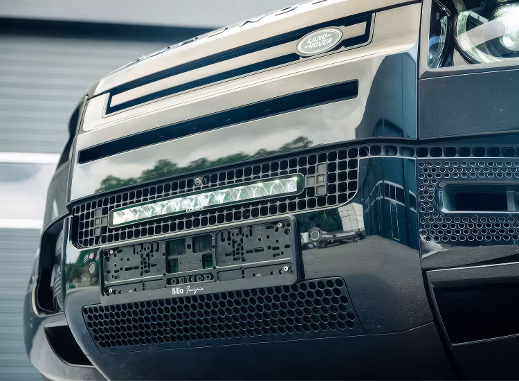 Ett modellanpassat grillkit ger en diskret och elegant installation. Till skillnad från universella lösningar som ofta bygger ut eller inte passar perfekt, är dessa fästen tillverkade specifikt för Land Rover Defender 2020+. Monteringen är enkel – du behöver inte demontera grillen. Du skär ett hål, placerar fästet och skruvar fast LED-rampen. Resultatet blir en sömlös och integrerad montering utan synliga modifieringar.