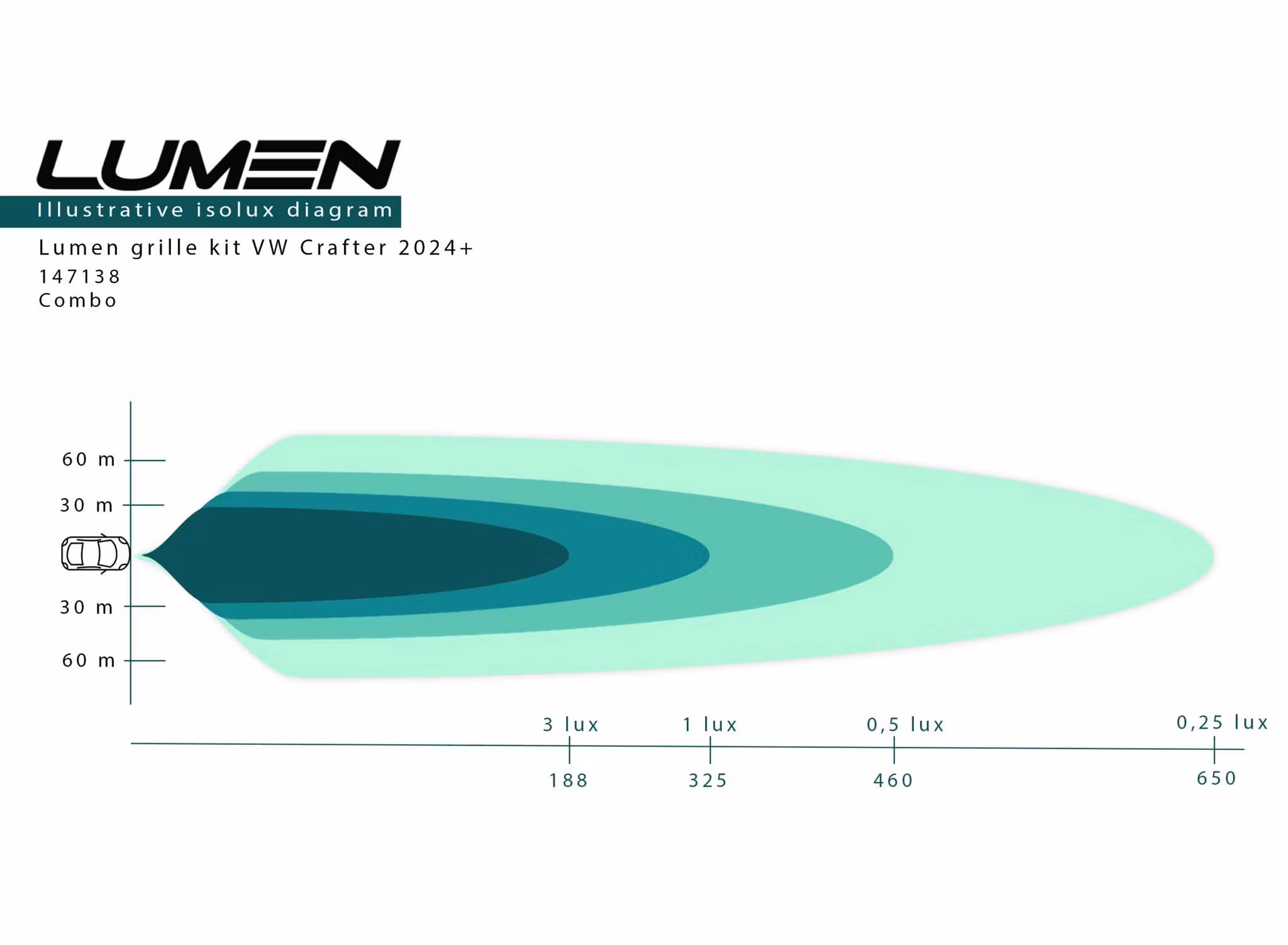 Detta grillkit från Lumen är modellanpassat för VW Crafter 2024+. Kitet gör det möjligt att montera två Lumen Helios SX10 LED-helljus integrerat i bilens främre grill för ett stilrent och fabriksnära resultat. Helios SX10 ger en kombinerad ljusbild med både bra bredd och lång räckvidd, vilket ger extra trygghet på vägen under mörka förhållanden.