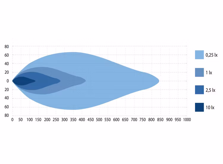 Neptune levererar en styrka på 8760 lumen vilket ger en räckvidd på 421 meter vid 1 Lux per extraljus (uppmätt). Lampan är E-godkänd (godkänd för användning i trafik).