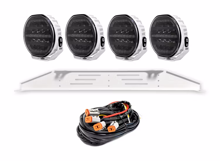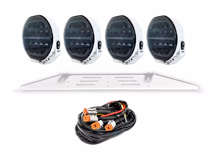 OZZ-4: Komplett extraljuskit med 4st lampor (7" eller 9", vit eller svart), fäste och kablage. Stör ej sensorer. Snabb och fraktfri leverans!