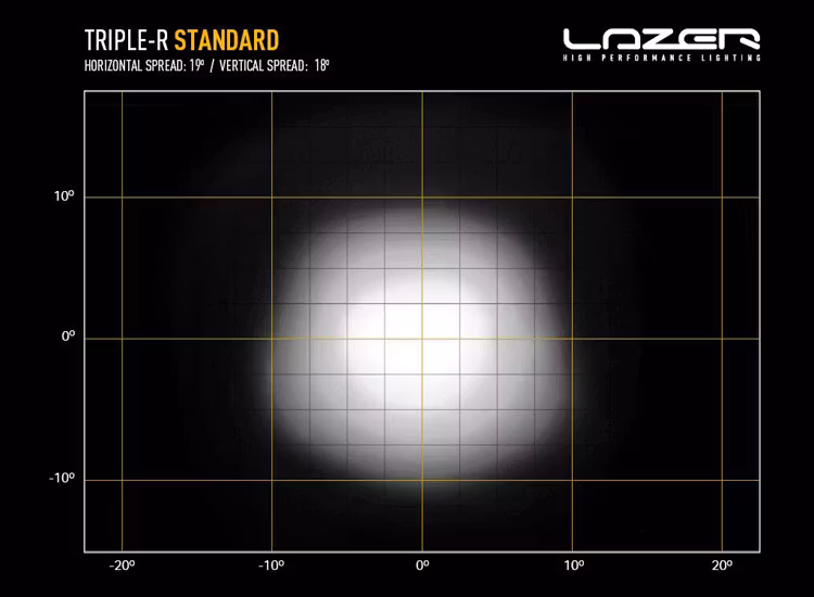 Den utvecklade ljusbilden ger en mycket lång räckvidd och säkerställer att du får god synlighet även på långa raksträckor. Den omformade linsen ger en god spridning av ljus ända ut i vägkanterna. Ljuskäglans spot är rund, likt de andra ramperna i Triple-R serien, vilket ger tillräcklig höjd även i backig terräng eller vid offroad-körning. Den behagliga färgtemperaturen på 5000K minskar påfrestningen på ögonen, vilket gör det bekvämt att använda rampen även under längre körningar.