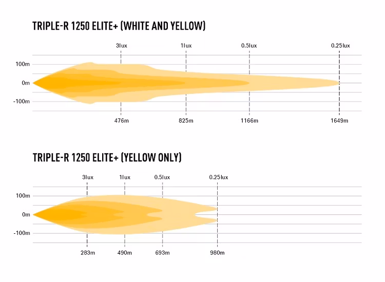 Lazer LED Triple-R 1250 Elite+ representerar den senaste tekniken inom LED-belysning och står som en symbol för innovation och prestanda. Som en del av den nyligen lanserade Elite+ serien, tar denna lampa LED-belysning till nya höjder genom att erbjuda en ljusbild som inte bara sträcker sig längre, utan även breder ut sig bredare än dess föregångare. En av dess mest framstående egenskaper är dess dual-färg funktion. Med denna teknik kan användaren välja mellan ett skarpt vitt ljus för optimal belysning eller ett varmt gult ljus för bättre synlighet i svåra förhållanden. Möjligheten att kombinera dessa två ljuskällor ger dig som användare en anpassningsbar belysningsupplevelse som passar alla typer av körscenarier. Oavsett om du kör genom ett snölandskap, dimmiga skogsvägar eller klara motorvägar, är Lazer LED Triple-R 1250 Elite+ designad för att erbjuda den bästa möjliga belysningen för din säkerhet och komfort.