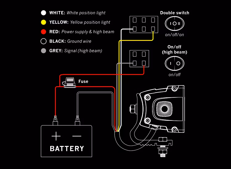 Den optimerade ljusbilden kombinerar god räckvidd med bred spridning, och färgtemperaturen är anpassad för att fungera även i dimma och snö. Rampen har ett dubbelt positionsljus med möjlighet att välja mellan gult och vitt ljus, samt en inbyggd Hello-funktion som aktiveras med två snabba blinkningar av helljuset.