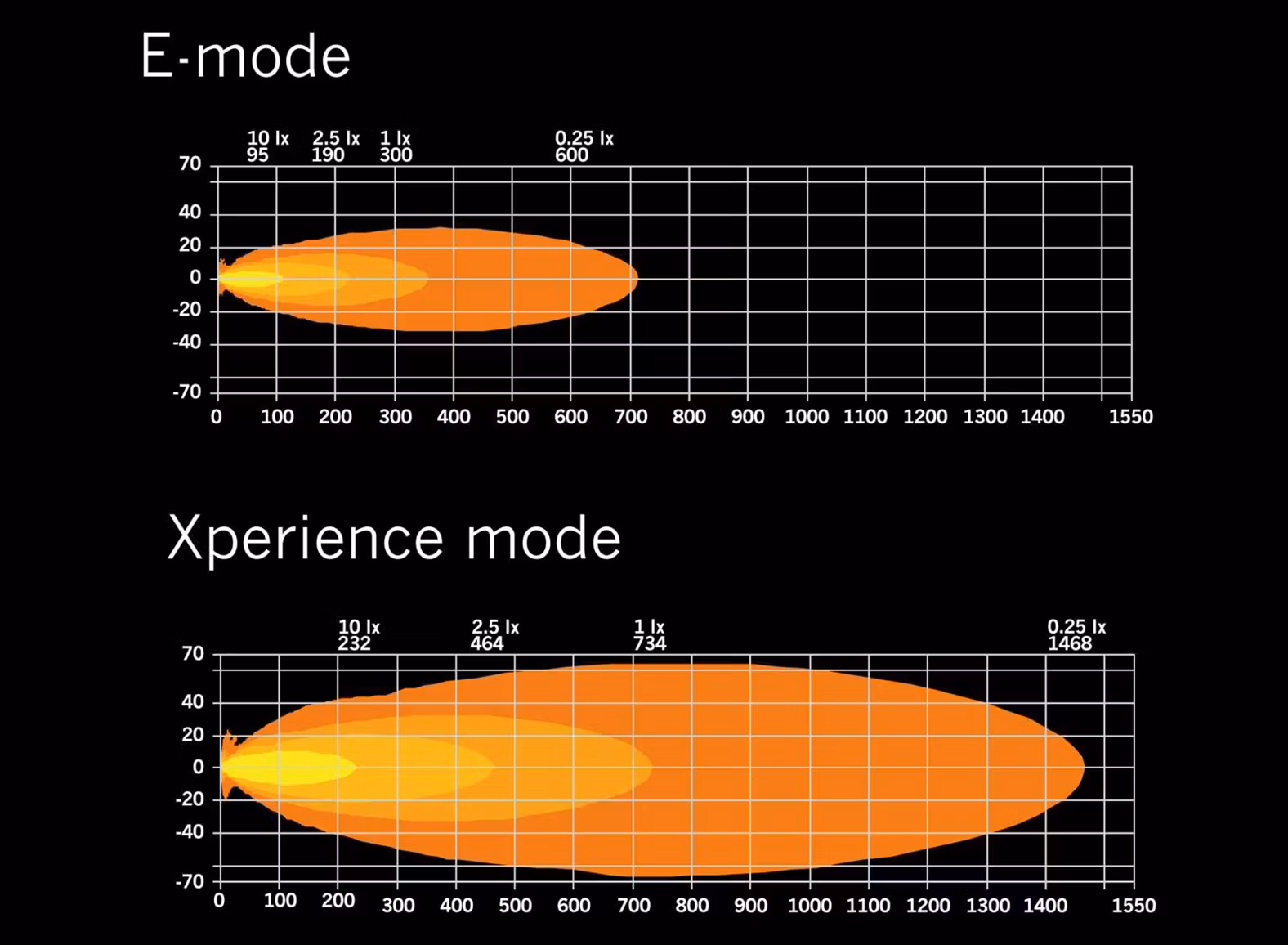 Den optimerade ljusbilden kombinerar god räckvidd med bred spridning, och färgtemperaturen är anpassad för att fungera även i dimma och snö. Rampen har ett dubbelt positionsljus med möjlighet att välja mellan gult och vitt ljus, samt en inbyggd Hello-funktion som aktiveras med två snabba blinkningar av helljuset.