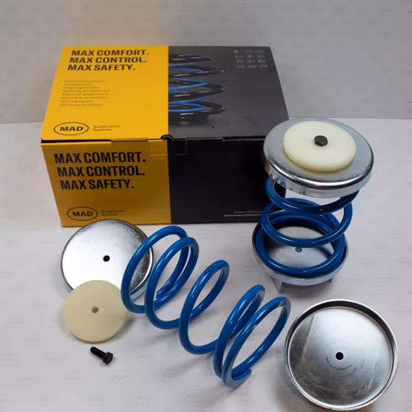 MADs fjädringssystem är till för att kompensera olika lastvikter och att stötta & hjälpa bilens original fjädersystem så att man bibehåller säkerhet och komfort även vid max tillåten last. Fjädringarna höjer aldrig den max tillåtna lastvikten för bilen.