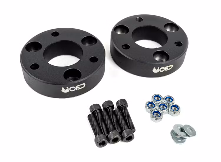 Justera framdelen mot bakdelen och få en ny look med ett kit från OFD. Bakdelen av RAM-modeller som är utrustade med ett fabriksmonterat fjädringskit är högre än framdelen. Ta hand om ditt fordon's utseende utan att offra körkomforten och utrusta det med fjäderbenförlängningar från OFD. Denna enkla lösning höjer framdelen med 2" samtidigt som den levelerar framdelen mot bakdelen utav bilen för en mer slående look. Enkel installation och bra kvalitet. Fjäderbenförlängningarna är tillverkade av högkvalitativ aluminium och pulverlackerade svarta för ökad korrosionsbeständighet. Hela designen är enkel att installera och ger utrymme för att montera större däck.