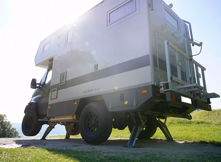 Ewolift erbjuder en av marknadens högsta lyfthöjder i klassen 3–30 ton. Det gör att systemet inte bara stabiliserar fordonet – det kan även lyfta det tillräckligt högt för att möjliggöra hjulbyte, service och inspektion direkt på plats. För dig som kör tung husbil, 4x4-camper eller expeditionfordon innebär det en helt ny nivå av funktionalitet och frihet.