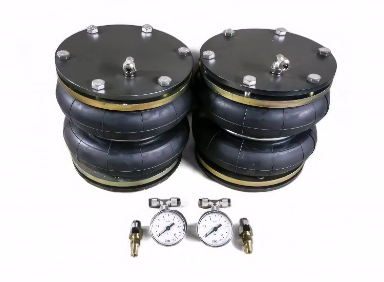 Komplett luftfjädringskit inkl. 2st bälgar som med fördel kan användas för att öka lastkapaciteten på pickups, husbilar, campers m.m. Universalkit som behöver fästen till respektive fordon (tillhandahålls av kund). Luftfjädringen minskar belastningen och förslitningen på bilens original fjädring och minskar även vibrationer, vilket ökar komforten avsevärt! Ställbart tryck på respektive sida för att kunna motverka eventuell ojämn lastning på fordonet.