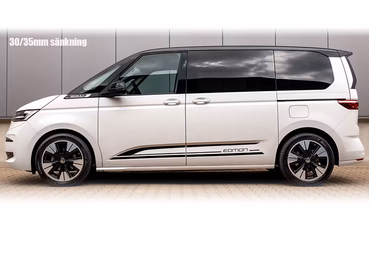 Denna sats sänker din Volkswagen T7 buss med 7 sittplatser fram med 30mm samt bak med 35mm. Alla H&R produkter är väl beprövade produkter som ej påverkar bilens övriga delar och garantier. Denna sats ger din bil ett snyggare utseende och en mycket bättre väghållning. Vi rekommenderar att man gör en 4-hjulsinställning efter att man monterat detta kit så du inte snedsliter dina däck. H&R är TUV godkända och tillverkas i Tyskland.