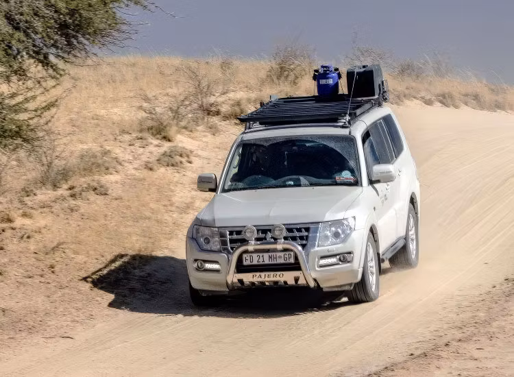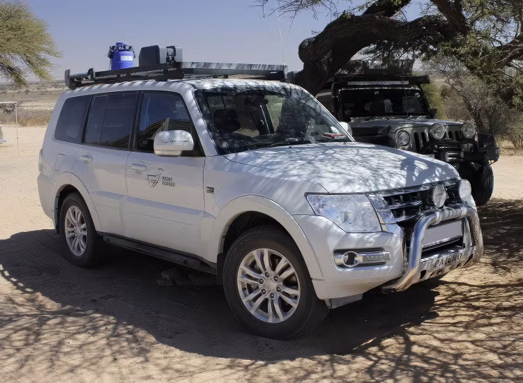 Robust och modulärt takplattform för Mitsubishi Pajero CK/BK LWB – fullt kit med Slimline II bricka, vindavvisare och fotrails. Monteras direkt i bilens befintliga fästpunkter utan borrning.