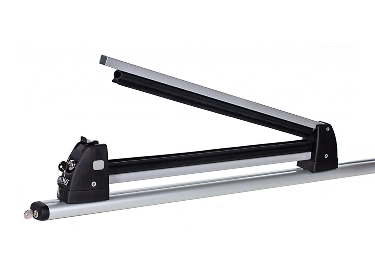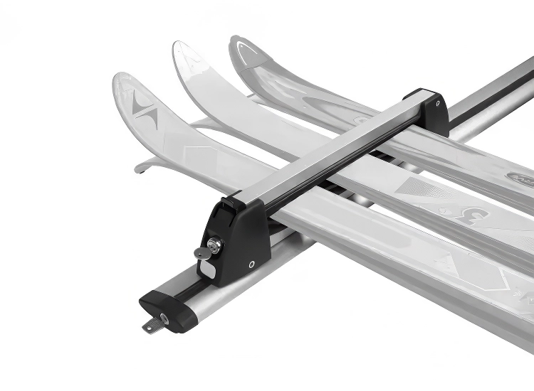 Denna skidhållare för takräcke är avsedd för säker och smidig transport av skidor i liggande läge. Beroende på vald storlek rymmer hållaren 3 eller 5 par skidor, vilket gör den lämplig för både familjeresor och längre skidresor med flera åkare.