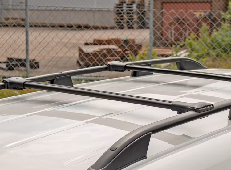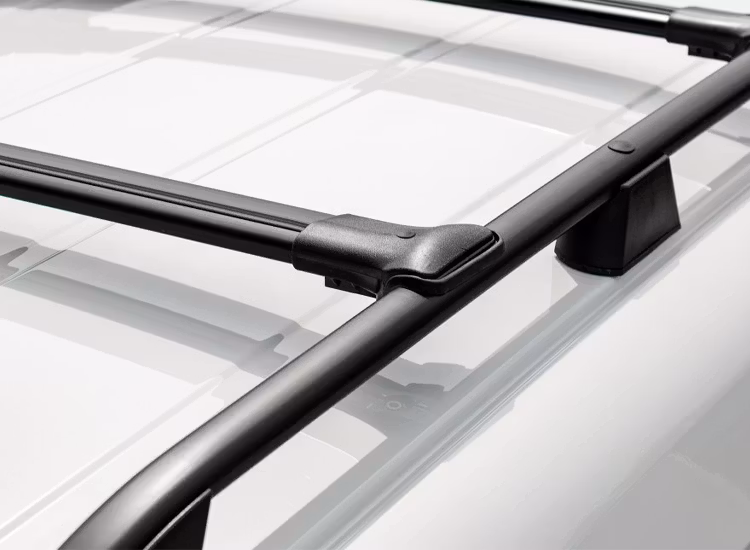 Takrailsen och tvärbalkarna är tillverkade i en robust kombination av aluminium och plast, och erbjuds i svartmatt eller silvermatt finish.