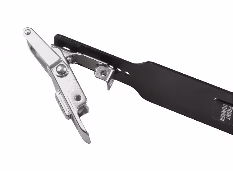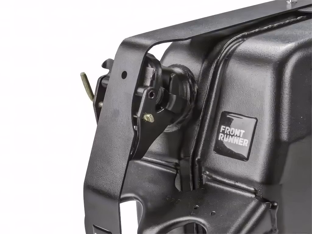 Tillverkad av höghållfast stål med svart pulverlackering, designad för enkel montering på Front Runner-takräcken via de platta, slitsade lamellerna i räcket.