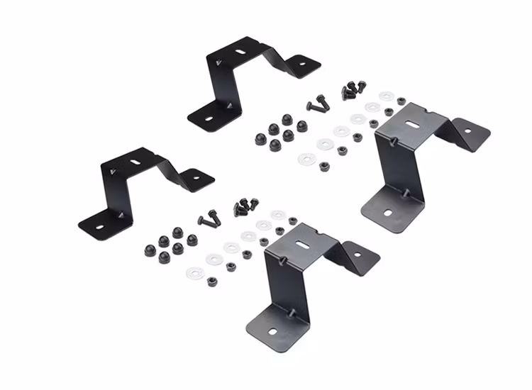 Front Runner har tagit fram färdiga fästen för att du på nolltid skall kunna montera ditt taktält uppe på din takplattform. Du väljer om du vill ha de låga fästena eller om du vill ha de höga. De höga gör så att du får mer utrymme på sidan utav din takplattform så att du samtidigt som tältet är monterat kan t.ex. ha din markis monterad och flera andra tillbehör. Fästena är tillverkade i svart pulverlackerat stål som är rostbehandlat.