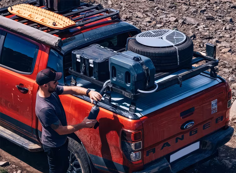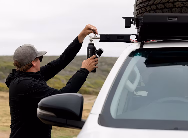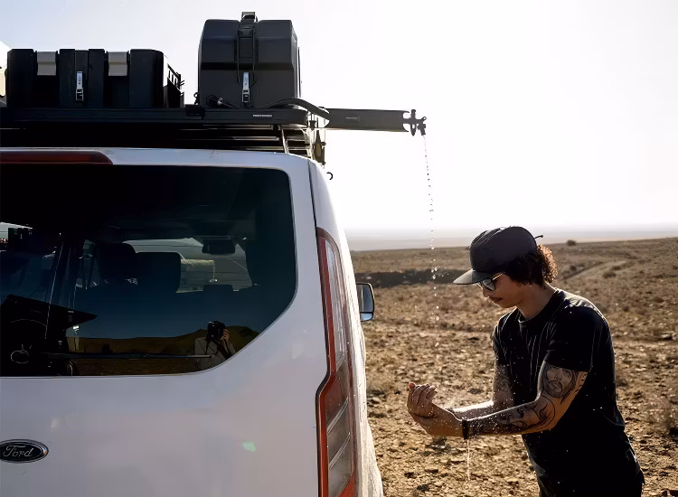 Förläng kranen från din vattentank bort från fordonet för att göra det enkelt att hälla upp vatten under dina äventyr.