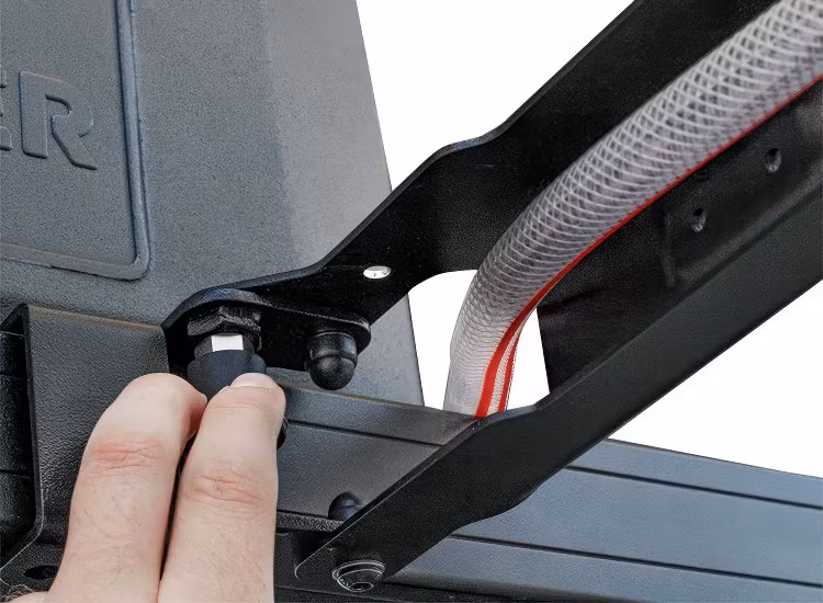 - Svängs ut 90 grader från räckets sida, så att vattenkranen kommer utanför fordonets kant.