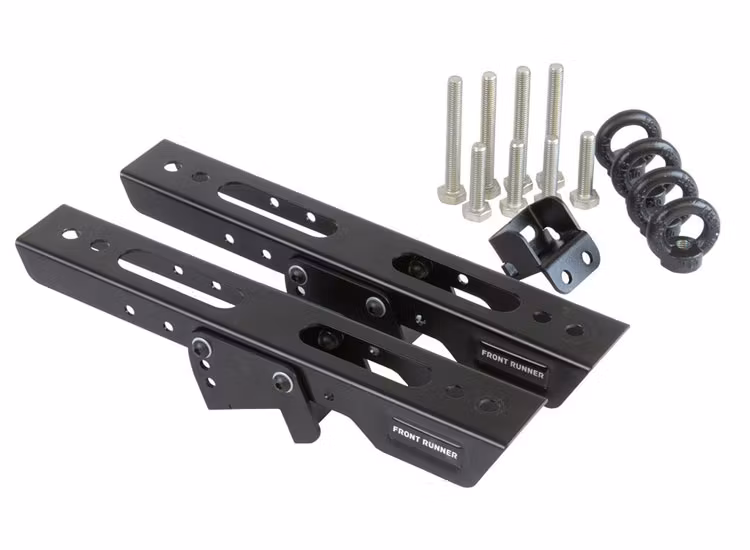 Dessa offroad-tåliga, artikulerande fästen monterar MAXTRAX, TRED Pro och andra populära räddningsenheter med liknande hålavstånd på sidan av Front Runner Slimline II-räcket. Dessa offroad-tåliga fästen monterar säkert MAXTRAX, TRED Pro och andra liknande hålavståndsåtervinningsenheter på sidprofilen av en Front Runner Slimline II Rack. Används också för att montera RRAC149 (säljs separat). Justerbar i höjd och vinkel för att komplettera olika fordonsprofiler. Inkluderar 2 typer av bultar för att hålla antingen 1 eller 2 par MAXTRAX / TRED Pro. Byggd för att monteras på sidoprofilerna av ett Slimline II takräcke, men är också kompatibel med det ursprungliga Slimline-räcket. Färdig med samma hållbara, väderbeständiga svarta pulverbeläggning som Slimline II Rack. De medföljande bultarna kan bytas ut mot REQU120 (säljs separat) för att låsa fast MAXTRAX på plats. Obs: Denna produkt är inte kompatibel med Slimsport rack kit-serien.