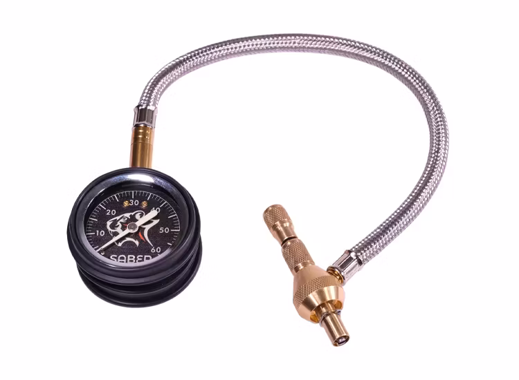 SABER Offroad däcktryckstestare är precis det verktyg som alla offroadåkare behöver när de är ute och reser i denna fantastiska värld. Förhållandena förändras snabbt, oavsett om det är sand, steniga berg, grusvägar eller dyligt behöver du kolla dina däck för att hålla nivån på lufttrycket för att ta dig dit du behöver. Denna trycktestare kommer att göra den här uppgiften till en lek satt hålla koll på rätt lufttryck. I kombination med en stålomspunnen slang i rostfritt stål är denna kraftiga däcktryckstestare redo när du behöver den som mest!