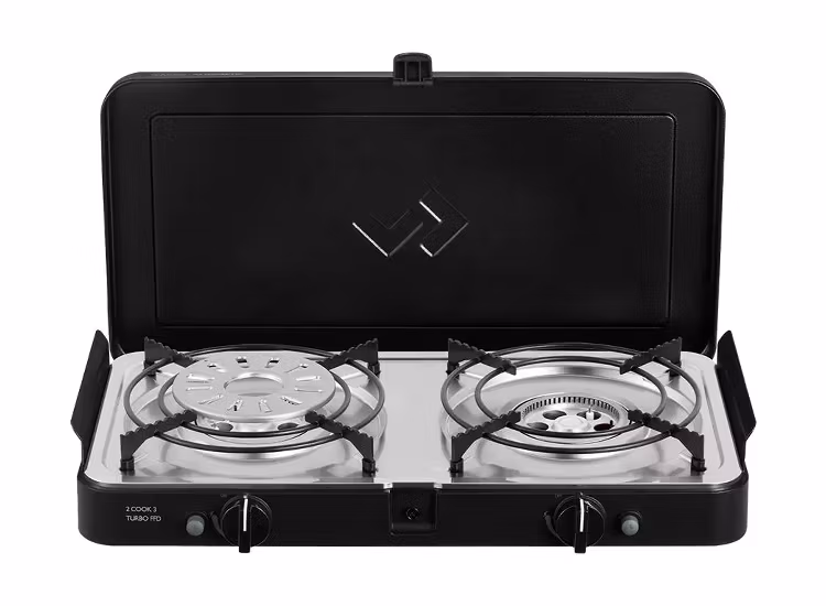 Campingkök från CADAC för både utomhus- och inomhusmatlagning. Med sina två kraftfulla turbobrännare får du en koncentrerad värmeeffekt.