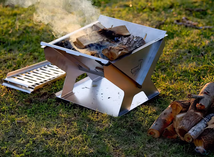 En grill/eldstad som är designad för att packas platt och är 1,5 tum / 38 mm tjock. Grillen har en robust bas för säker grillning med sidor som fungerar som vindskydd. Snabb och enkel installation på 30 sekunder. Innesluter din eld på ett säkert sätt och håller elden upphöjd från marken. Tillverkad av slitstarkt 3CR12 rostfritt stål, vilket ger hög rost- och korrosionsbeständighet. Levereras med lyftverktyg för galler.