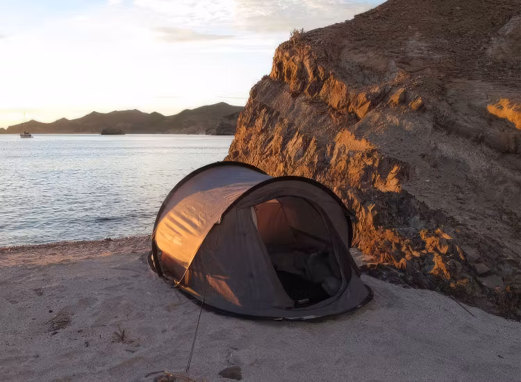 Pop-up tältet är ett smidigt designat tält för två personer. Med sin unika pop-up design kan du snabbt och enkelt sätta upp tältet, bara kasta ut tältet och se det vika ut sig, för att sedan trycka i tältpinnarna. Det packas snabbt och enkelt ihop, blir platt som en pannkaka och kan förvaras i den medföljande slitstarka canvas väskan.