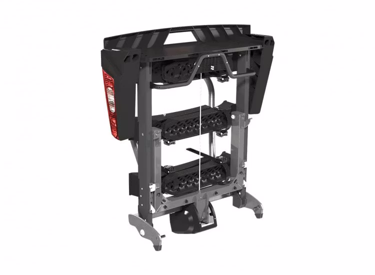 Funktionerna sträcker sig långt bortom enkel transport och förvaring. Denna dragkrokshållare är utrustad med ett fällbart hjulfack, vilket inte bara minskar dess storlek när den inte används, utan också gör det enklare att förvara den. Dessutom finns det en bekväm ramp för elektriska cyklar (säljs separat), vilket gör det lättare att lasta och lossa cyklar, oavsett deras vikt.