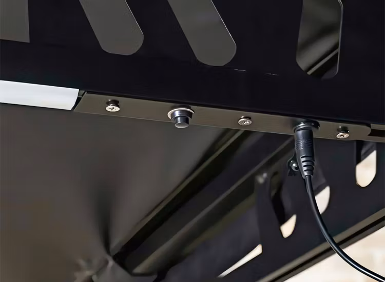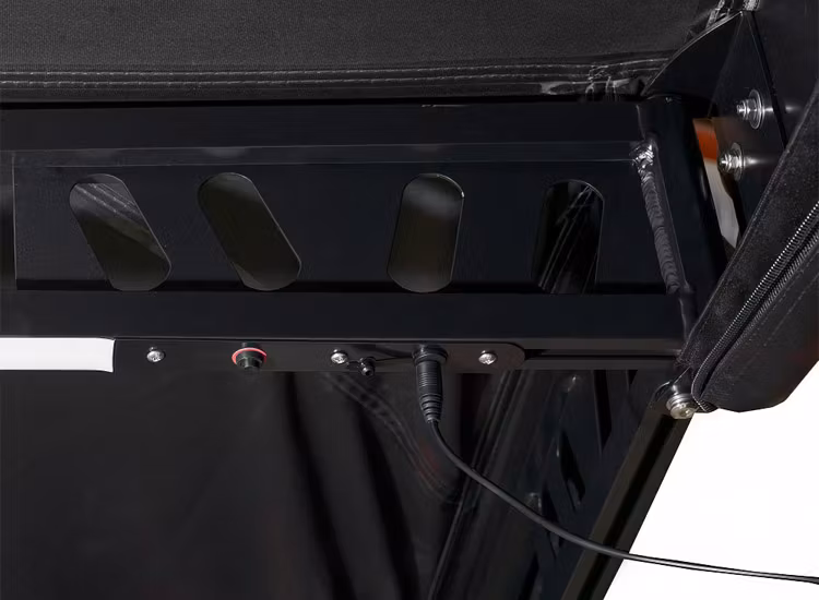 Även denna markis har ”regnben” som du enkelt viker upp vid nederbörd som då ser till att vattnet ej samlas uppepå din markis.