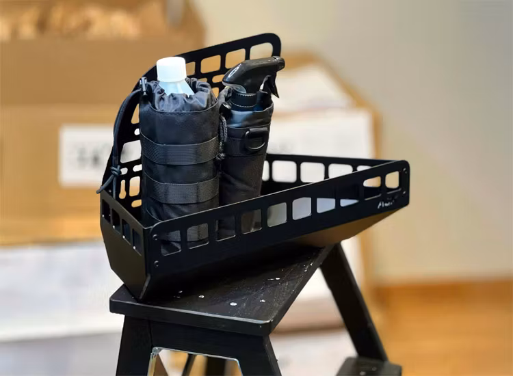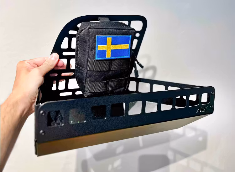 Tillverkad av robust, pulverlackerad 2mm aluminium, är den byggd för att hålla i ur och skur. Den anpassar sig lätt till dina behov med hjälp av MOLLE-systemet, som låter dig skräddarsy din förvaring precis som du vill ha den. Monteringen är enkel och flexibel, du kan använda de medföljande spännbanden eller skruva fast den för extra stabilitet.
