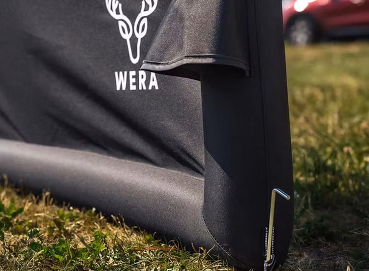 Vindskyddet tar minimalt med plats eftersom det är uppblåsbart. Pump ingår!