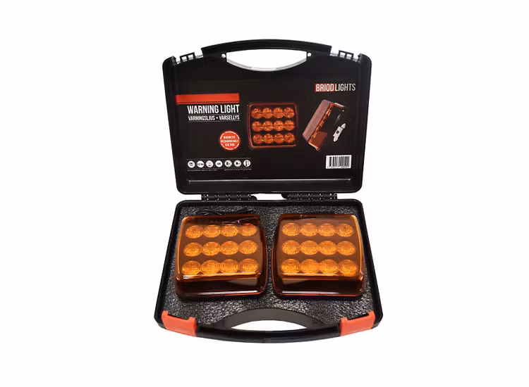Mångsidigt batteridrivet LED varningsljus från BriodLights med starkt magnetiskt fäste. Den enkla magnetmonteringen, bara att placera på en plan metallyta, gör att varningsljuset enkelt kan monteras och flyttas mellan olika fordon och släpvagnar. Belysningen aktiveras med en enkel knapptryckning och har 7 timmars batteridrift.