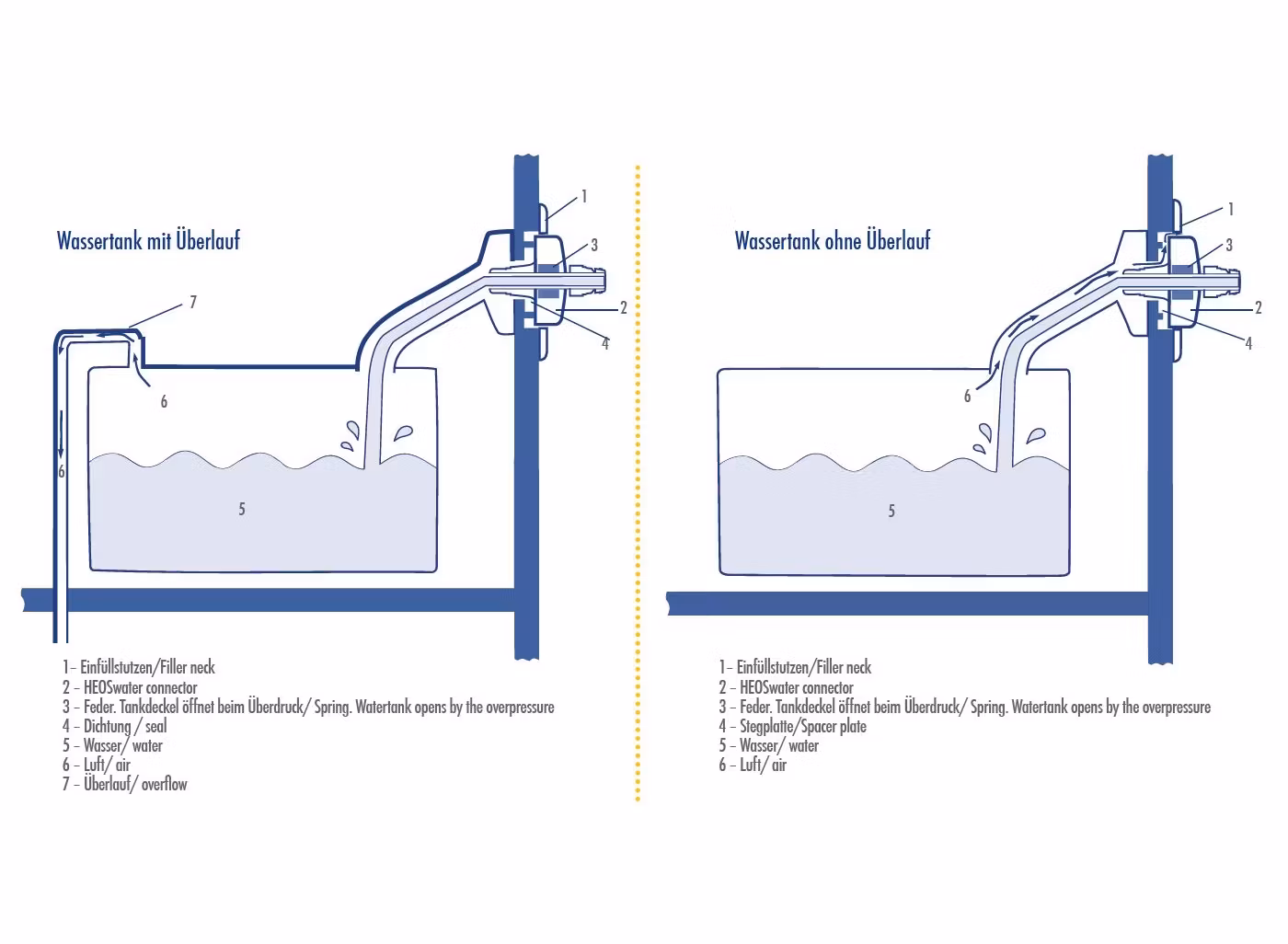 HEOSwater Connector® är ett smart tanklock som gör påfyllning av vattentanken enkel, snabb och hygienisk. Passar alla påfyllningsstosar med 3-punkts bajonettlås och levereras med två ringar för både standard- och mindre påfyllningsöppningar.